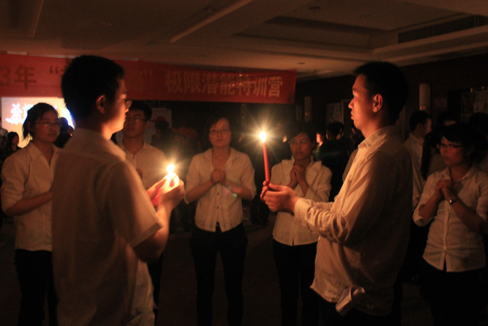 當(dāng)我踏入會(huì)場(chǎng)的時(shí)候,整個(gè)人都被會(huì)場(chǎng)激昂的音樂及助教們高昂的情緒所帶動(dòng),進(jìn)會(huì)場(chǎng)時(shí)我是高喊著蹦著沖進(jìn)去的!其實(shí)我是一個(gè)性格比較內(nèi)斂的一
