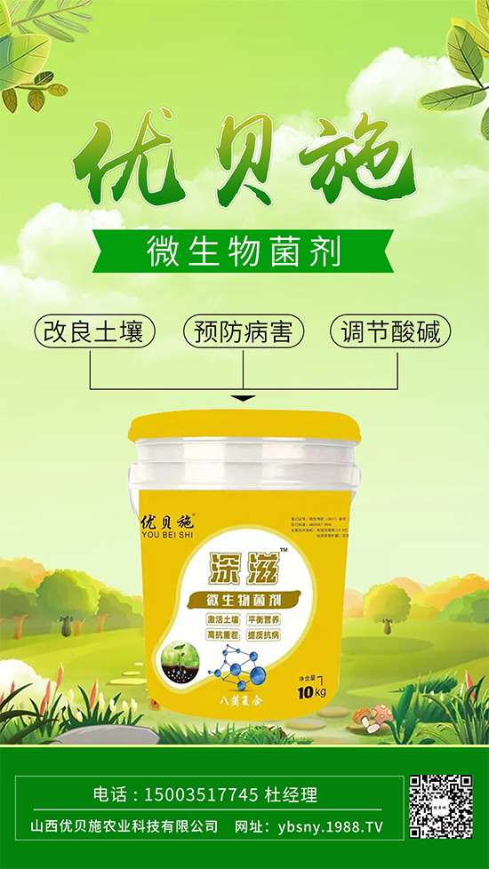 山西優(yōu)貝施農(nóng)業(yè)科技有限公司【微生物菌劑-深滋】主要以枯草芽孢桿菌、地衣芽孢桿菌、巨大芽孢桿菌、鼠李糖乳桿菌、嗜酸乳桿菌、酵母菌、糞腸球菌、光合細菌、八種復合的(好氧+厭氧)菌群復合發(fā)酵而成,使用后可以增強根系的生長,增加根系的數(shù)量(生根快,須根多);提高肥料的利用率;促進作物對有效養(yǎng)分的吸收,增強作物對養(yǎng)分的運輸性;