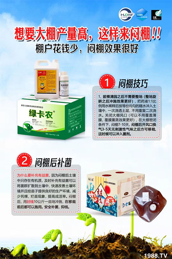 大棚的土壤已經(jīng)壞了!用再多的肥料也高產(chǎn)不了!是時候改土殺線蟲,老棚變新棚了!燜棚是一種簡單有效的農(nóng)業(yè)防止措施,能夠從土壤本質(zhì)入手,從根本上解決問題,從而達到理想的防治效果。