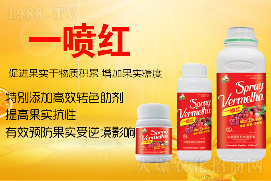 巴斯福【功能型有機(jī)水溶肥料-一噴紅】可快速促進(jìn)果實成熟轉(zhuǎn)色,提前上市7-12天,且果實色澤均勻自然;有效促進(jìn)果實干物質(zhì)積累,增加果實糖度,預(yù)防果實受逆境影響,提高果實抗性。
