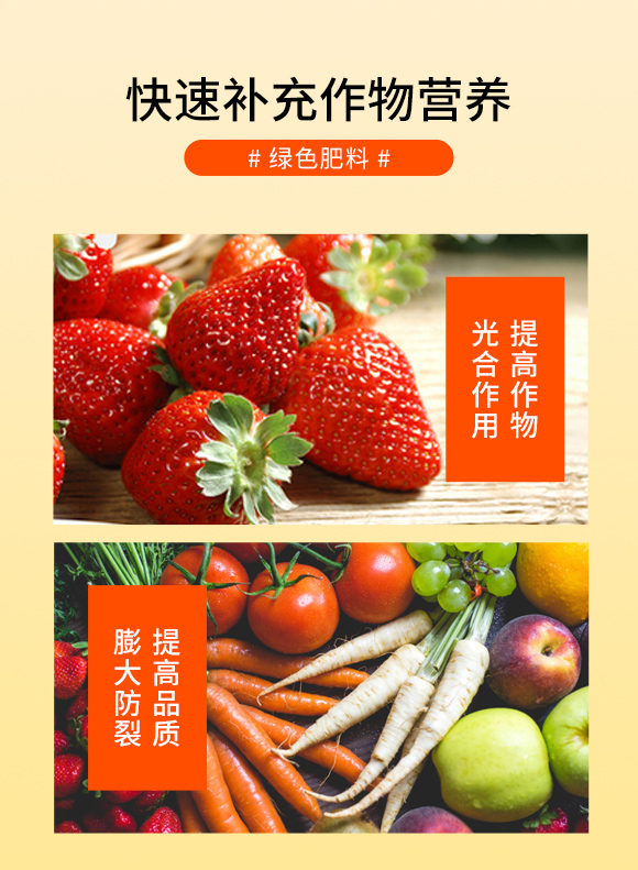本品采用鈣鎂搭配植物所需營養(yǎng)元素,吸收快,營養(yǎng)全面,能夠快速補(bǔ)充作物營養(yǎng),提高作物光合作用,不含激素,針對作物抗逆性差、膨果差、品質(zhì)差等一系列問題研發(fā)的一款綠色肥料。