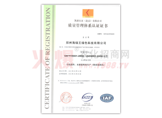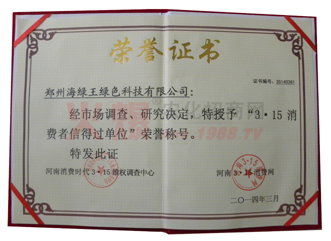 如今的海綠王,各個(gè)部門及各項(xiàng)規(guī)章制度均以完善,產(chǎn)品的生產(chǎn)也步入了規(guī)范化管理,起步雖晚,但成績(jī)喜人,海綠王被評(píng)為“中央電視臺(tái)AAA誠(chéng)信企業(yè)”“河南衛(wèi)視《梨園春》欄目上榜品牌”、“3/15消費(fèi)者信得過(guò)單位”“河南省肥料協(xié)會(huì)常務(wù)理事單位”、“河南省十佳科技型具競(jìng)爭(zhēng)力企業(yè)”、“ISO9001質(zhì)量認(rèn)證”、“2012綠色農(nóng)資品牌”、“中國(guó)果菜無(wú)公害科技示范單位”、“世界貿(mào)易組織河南省推薦單位”、“2009中國(guó)農(nóng)藥企業(yè)具成長(zhǎng)性100強(qiáng)”、“河南民營(yíng)企業(yè)發(fā)展促進(jìn)會(huì)常務(wù)理事單位、”河南科技學(xué)院大學(xué)生就業(yè)創(chuàng)業(yè)見(jiàn)習(xí)基地“等數(shù)項(xiàng)榮譽(yù)。目前的海綠王,穩(wěn)步發(fā)展,勇于創(chuàng)新,走出了具有海綠王特色的綠色農(nóng)業(yè)發(fā)展之路,力爭(zhēng)為中國(guó)綠色農(nóng)業(yè)、中國(guó)新農(nóng)村的建設(shè)與發(fā)展貢獻(xiàn)自己的力量。