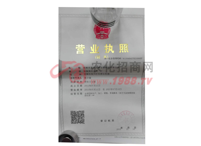 邯鄲市復興漢唐生物科技有限公司 聯(lián)系方式:留言后自動顯示!  點擊留言 申請樣品