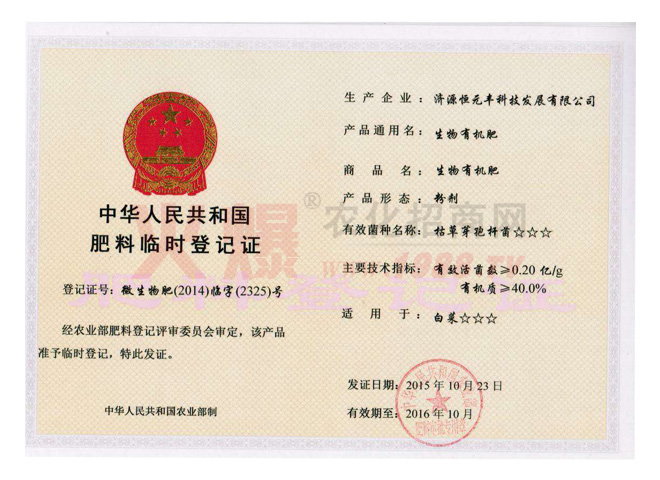 北京恒元豐科技發(fā)展有限公司----座落于農(nóng)業(yè)科學院內(nèi),是集科研、開發(fā)、生產(chǎn)、銷售、技術(shù)服務(wù)于一體的高科技企業(yè),聚集了農(nóng)藥、化工、植保、營銷等方面的人才,擁有一支高素質(zhì)的員工隊伍,本科以上學歷占公司人員60%以上,公司依托自身科技優(yōu)勢,人才優(yōu)勢,致力于高效、廣譜、低毒、綠色環(huán)保型農(nóng)藥的開發(fā)研究,加速了科研新成果、新技術(shù)的商品化、市場化,成功研制出具有獨果的無激素植物生長激活劑、高效殺蟲劑,集殺菌以及土壤改良肥、土壤調(diào)理劑、高效復合(混)肥系列等農(nóng)資產(chǎn)品。