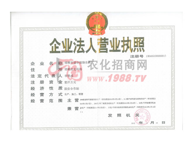 邯鄲市建華植物農(nóng)藥廠,位于邯鄲市北環(huán)西路,緊鄰107國道,交通方便,地理位置優(yōu)越。公司創(chuàng)建于1999年,基礎(chǔ)設(shè)施齊全、檢測手段先進(jìn),是人民共和國農(nóng)業(yè)部批準(zhǔn)的農(nóng)藥定點(diǎn)生產(chǎn)企業(yè),專業(yè)從事高效、低毒、環(huán)保的高新農(nóng)藥制劑的研發(fā)和生產(chǎn),特別著力于對植物新生病害及農(nóng)藥新元素的研究和開發(fā)應(yīng)用。主要產(chǎn)品有殺菌劑、殺蟲劑、植物生長調(diào)節(jié)劑三大系列。公司擁有一支精干崇德、務(wù)實(shí)創(chuàng)新的開拓團(tuán)隊(duì),在立足三農(nóng)、立足市場、立足客戶的基礎(chǔ)上,實(shí)力規(guī)模不斷擴(kuò)大,在對引發(fā)多種植物癌癥的類菌原體(簡稱MLO)研究中首開國內(nèi)先河,成功研制出有效防治藥劑---“綠威源”系列產(chǎn)品,填補(bǔ)了我國這一植保技術(shù)領(lǐng)域的空白。我們專門成立了(建華植保)這個(gè)部門,結(jié)合多種國內(nèi)外先進(jìn)技術(shù)和優(yōu)質(zhì)產(chǎn)品,是為了更好的服務(wù)和指導(dǎo)農(nóng)民朋友種好經(jīng)濟(jì)作物等高收入產(chǎn)品,提高產(chǎn)值和栽培管理技術(shù)。