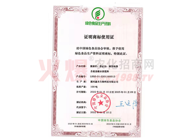 漯河鑫禾生物科技有限公司是農(nóng)業(yè)科技的殿堂,她沉積了待以開(kāi)發(fā)的物價(jià)科技財(cái)富,擁有大批的科技人才,公司目前擁有國(guó)家肥料登記證十一種,注冊(cè)商標(biāo)五個(gè),發(fā)明專利一項(xiàng)。