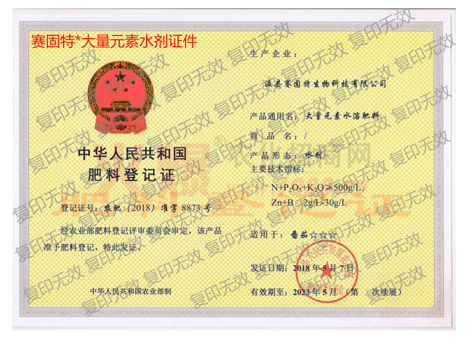 賽固特(武漢)生物科技有限公司的產(chǎn)品品質(zhì)上乘,種類繁多,包括化學(xué)合成水溶肥類,EDTA螯合態(tài)元素類、有機(jī)碳無機(jī)營養(yǎng)小分子液體肥,礦物源植物抗逆劑等,有賽固特、雪綠豐、歐樂鉀、微力補(bǔ)等系列產(chǎn)品,可用于沖施、滴管、葉面噴施,客戶遍及及整個(gè)亞洲。