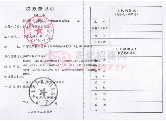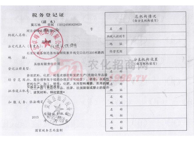 • 稅務(wù)登記證稅務(wù)登記證