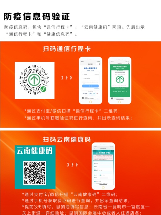 防疫信息碼:包含“通信行程卡”、“ 云南健康碼”兩項(xiàng)。先后出示“通信行程卡”和“健康信息碼”。