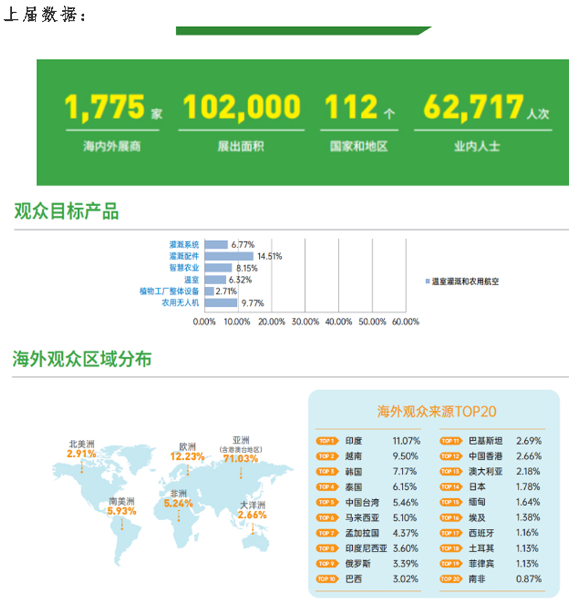 2024上海農(nóng)業(yè)科技展涵蓋灌溉、溫室、農(nóng)用航空、種業(yè)、智慧農(nóng)機(jī),3月13-15日在國(guó)家會(huì)展中心(上海),2024上海農(nóng)業(yè)科技展參展規(guī)模有多大?2024上海農(nóng)業(yè)科技展往屆數(shù)據(jù)如何?一起來了解下吧!